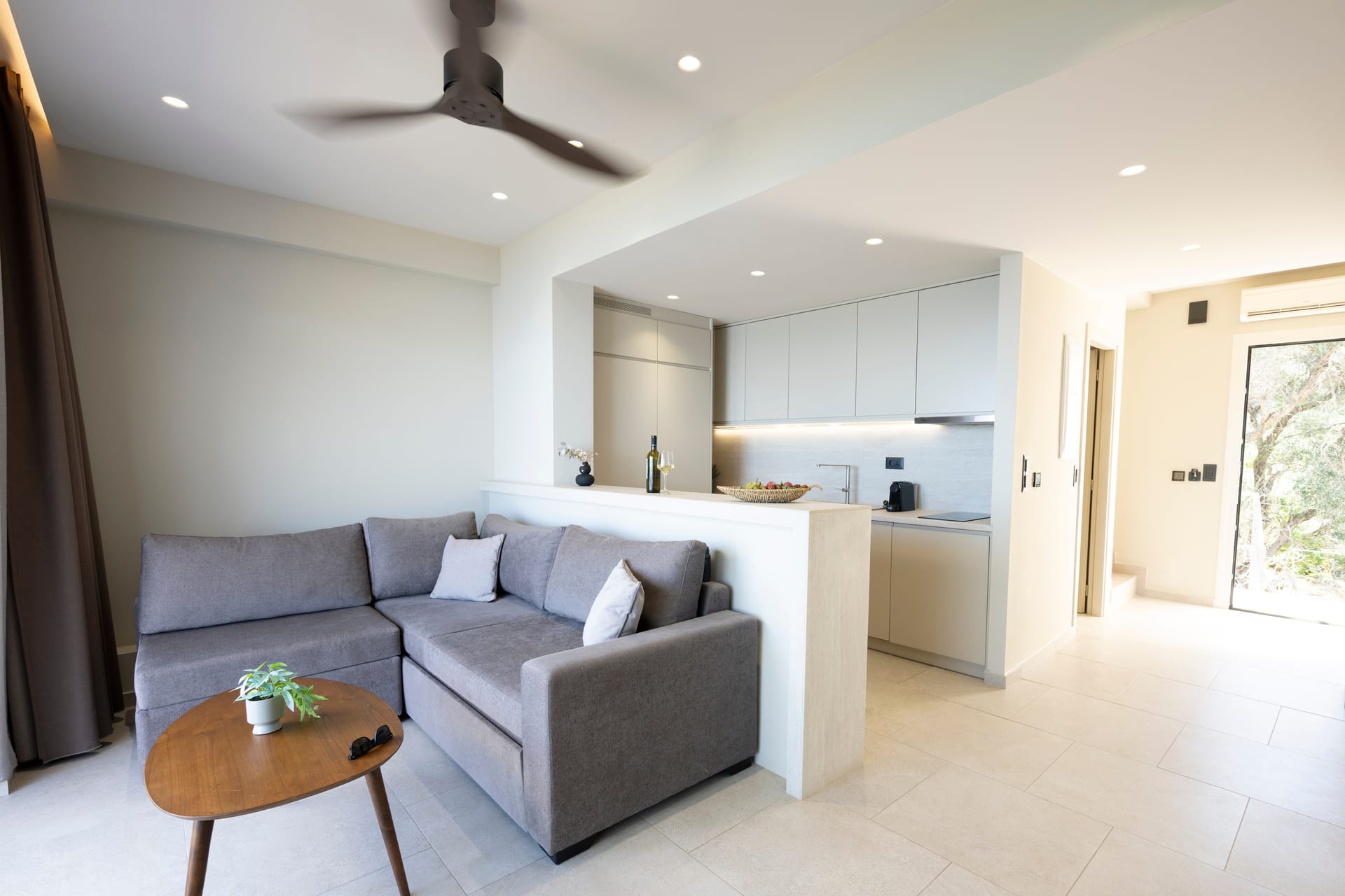The brand new (2024 built) semi-detached Premium Villas Sea View Private Heated Pool and Jacuzzi/Hot-Tub offer luxurious accommodation for a maximum of 5 persons plus up to 3rd children in total, in 60 square meters indoors and approx. 80 square meters, private, outdoors living space on 2 floors/leves. Premium Villas have their own private Swimming Heated Pools and a private Jacuzzi/Hot-Tub. Indoors this 2 storeys Villas (internal staircase) are comprised of one double bed Bedroom and a separate open space fully equipped kitchen with a Living-room and a 55’ Flat LCD TV, 1 bathroom on each floor and gorgeous-endless sea views. The additional up to 5th person/or the 3r child sleep on comfortable sofa-beds and a single bed in the Living-room. The Villa's access is on the 1st Floor (external staircase) with interanl staircases also- thus this maybe an issue for guests with limited mobility. Free fast speed reliable ADSL Internet connectivity comes standard.
